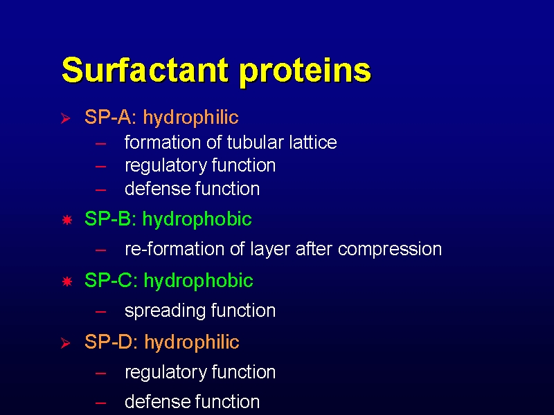 SP-D is another collagen-like hydrophilic protein present in the airspaces which stimulates the production of free oxygen radicals by alveolar macrophages, but its biophysical role in the surfactant system has not been defined.